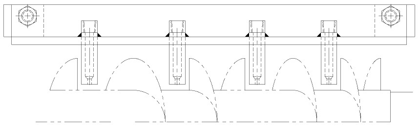 Almost all Vincent presses use screws with the interrupted flight design. Built with anything from three to seven stages of compression, there is a gap in the screw flighting for each stage of compression. Resistor teeth, fixed from the outside of the screen, project through the screen into these gaps. The purpose of the resistor teeth is to prevent co-rotation of the material in the press. In addition, they cause agitation within the press, which stirs wet material against the screen of the press.