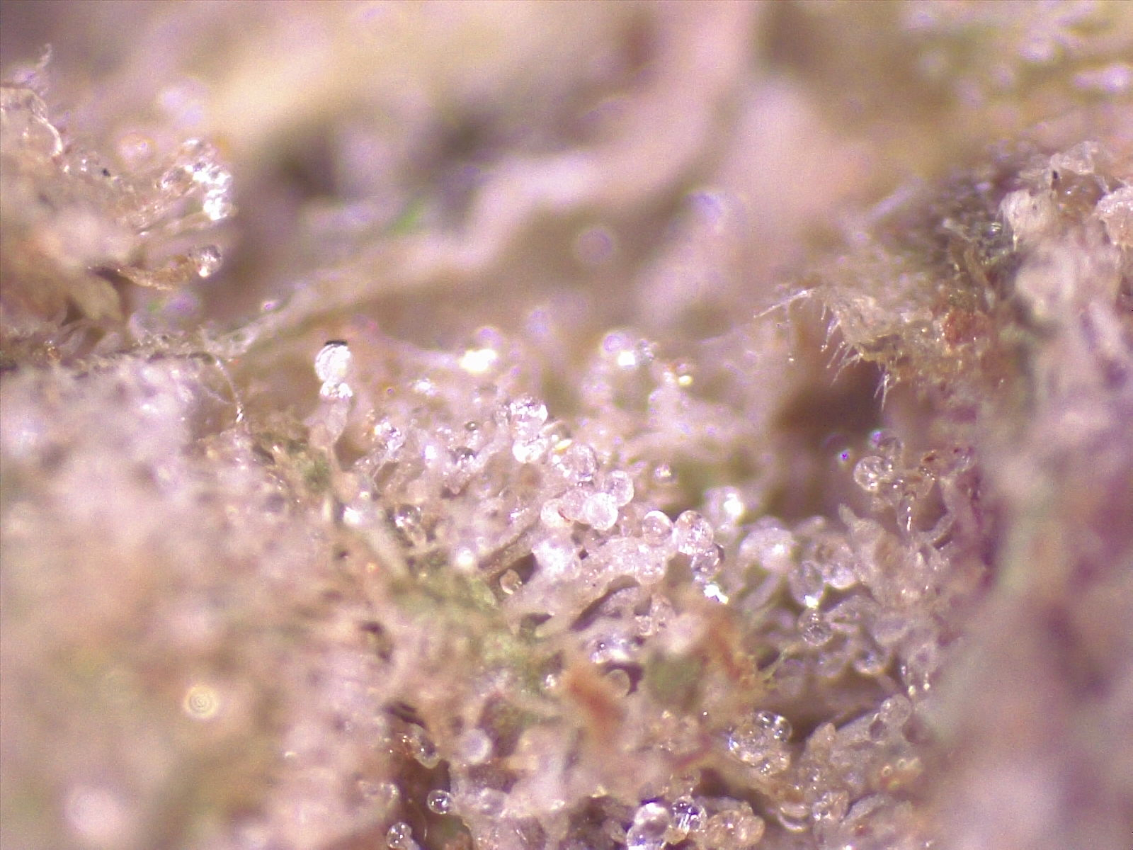 These oils are found in trichomes which are attached to the buds and leaves of the plants. These look like tiny crystalline apples, complete with a stem, as seen in the photo below.