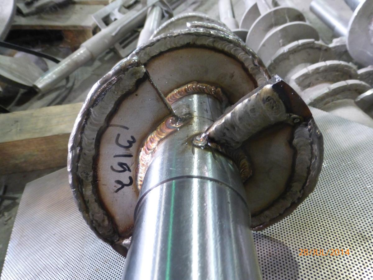 Sometimes there are blades welded to the outside tips of the last two flights of the screw. Called “Wing Feeders”, these are mounted parallel to the discharge screen surface. Care must be taken that wing feeders are not made so long that they hit the face of the cone when the cone is in the closed position.