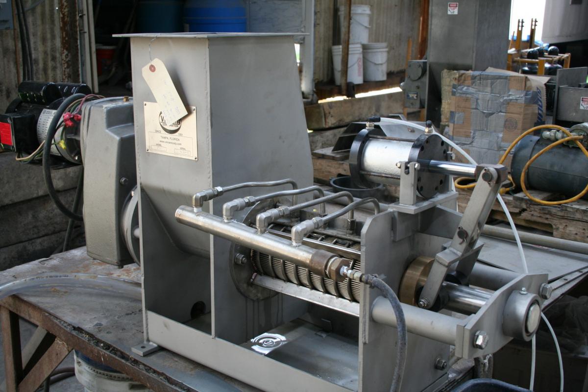 A screw press, like any screw conveyor, is totally unforgiving. If clothing or a limb gets caught in a rotating screw, the screw will not stop.
